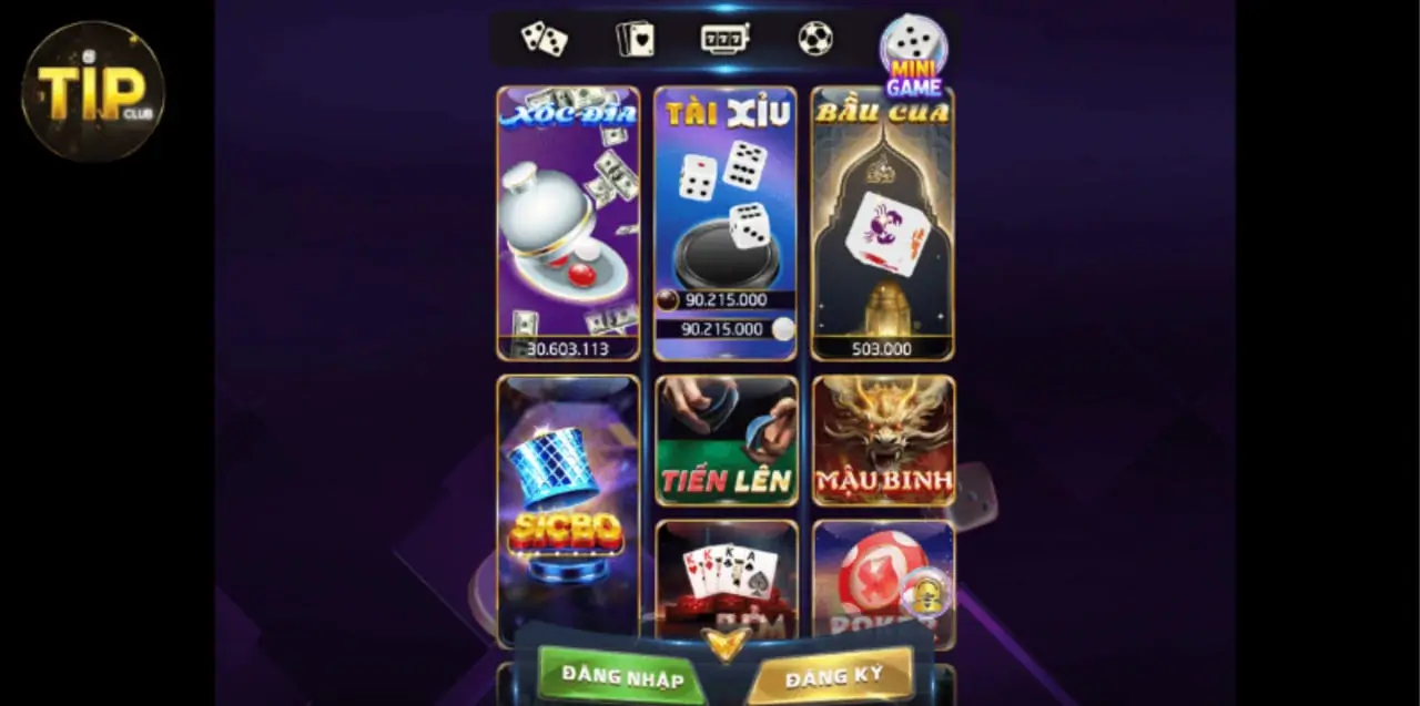 - Tài Xỉu (Tai Xiu): Tựa game "quốc dân" tại Tip Club với tính năng cân cửa minh bạch, soi cầu dễ dàng.